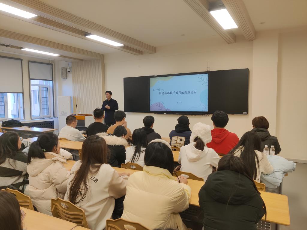 2025年12月24日,数学与信息科学学院特邀朝阳市第七中学校长为2024级数学与应用数学专业学生作专题讲座。讲座以“知行合一:构建卓越数学教育的四重境界”为核心,为师范生搭建了连接理论与基础教育一线的交流平台。