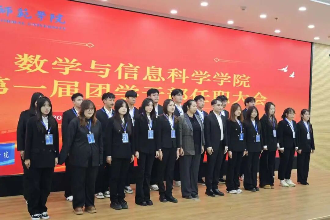 2025年12月11日,数学与信息科学学院第一届团学干部任职大会在大学生活动中心隆重召开。数学与信息科学学院党总支部副书记丛日涛、专职组织员孔庆童、团委书记牛夕月,辅导员史鑫磊、张宇、孙煜超、张钰冰出席大会。