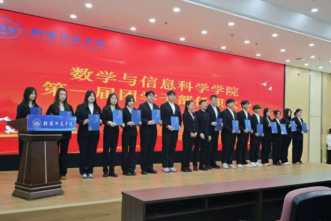数学与信息科学学院团委书记牛夕月老师宣读表彰并颁发结任证书。一纸聘书,承载着过往的辛勤与荣光上届团学与公寓管理委员会委员们,以真诚服务同学、以担当引领成长,为学院建设贡献青春力量。